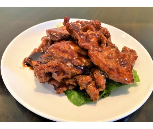 Deep Fried pork chop w. special homemade BBQ sauce.