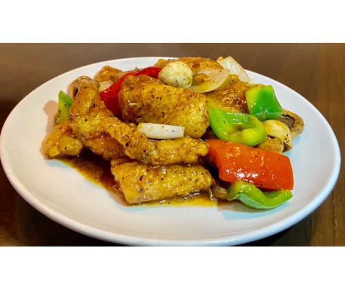 Stir-fry fish fillet w. bell peppers, onions & mushrooms Casserole