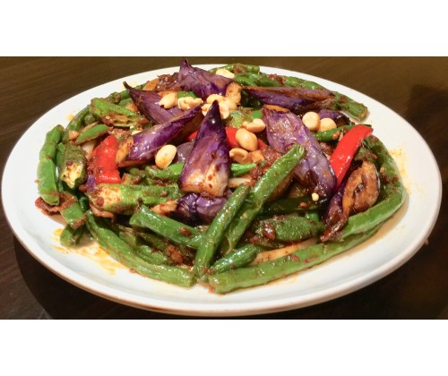 Sauteed w. string bean, okra, eggplant, peanut in shrimp paste souce.